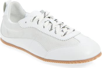 Add a graceful yet sporty vibe to your off-duty look with this streamlined, ballet-inspired sneaker handcrafted from Italian leather upper with a cushioned leather footbed and flexible rubber sole.