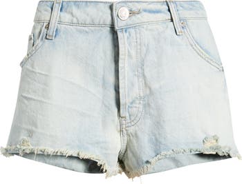 Cut from nonstretch denim and turned to a bleach-baked fade, this cute cutoffs will be a festival fave.