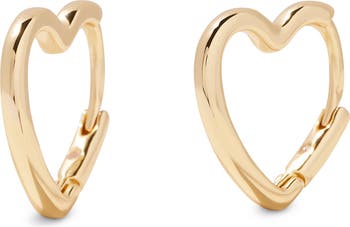 Thick tube brings a bold look and feel to modern hoop earrings fashioned in the shape of a heart and warmly plated in 14-karat gold.
