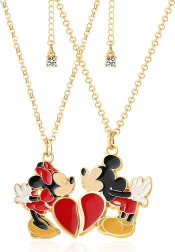 Share your love for Disney with the Minnie and Mickey Mouse 2 Piece Necklace Set. This charming set features two matching necklaces, each showcasing the iconic Minnie and Mickey Mouse characters. Perfect for couples or best friends, these necklaces symbolize a timeless bond that Disney fans of all ages will cherish.