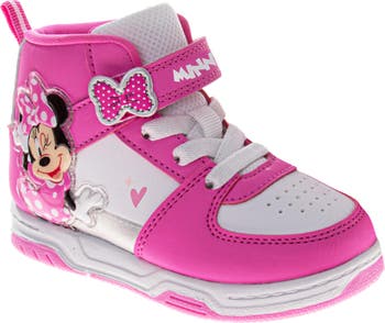 She can step into 2026 with a pop of pink and a dash of Disney magic in these Minnie Mouse high-top sneakers. Featuring the iconic Minnie Mouse in her classic polka-dot bow, these sneakers combine cheerful style with a supportive design perfect for active toddlers and little kids. The vibrant pink and white colorway is accented with a 3D-effect polka-dot bow on the strap, ensuring she feels like the star of the show during every playground adventure.