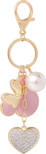 Accessorize with Minnie Mouse flair. This pink enamel keychain features a pearl accent and sparkling heart charm for a playful touch.