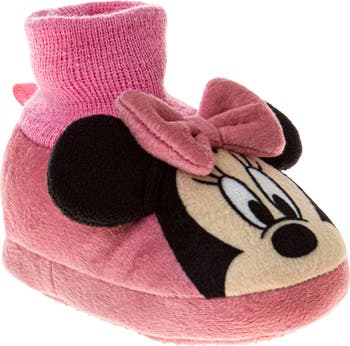 A sock-like cuff adds to the coziness of this plush Minnie Mouse slipper baby will love.