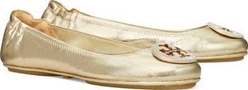 A sparkling logo medallion adds an extra touch of signature glamour to this stunning metallic ballet flat.