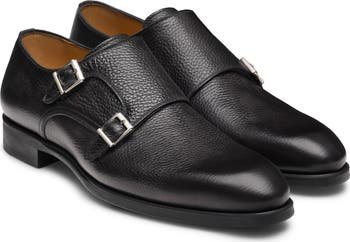 Minimal detailing brings maximum versatility to a monk shoe crafted from premium Spanish leather with a plain almond toe and unadorned monk strap enhancing the sleek, simple profile. Its fine-grain texture and polished finish makes it an ideal complement to any formal look.