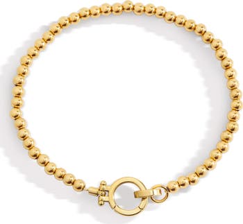Delicate gold beads meet a mint charm clasp for a playful twist. Style it solo or personalize with charms. Effortless, versatile, and perfect for stacking—your bracelet, your way.