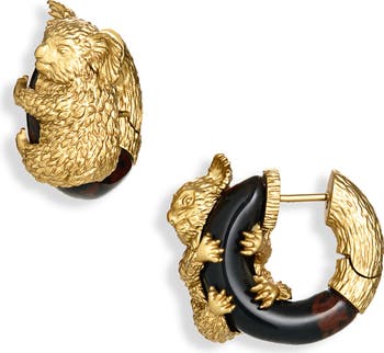 A cute koala bear clutches an obsidian hoop on these charming etched earrings designed with an organic feel in 16-karat-gold plate.