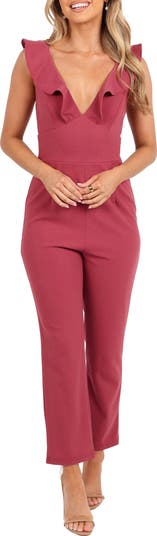 Bold ruffles bring movement to this stretchy jumpsuit made with clean seaming for an elevated look.