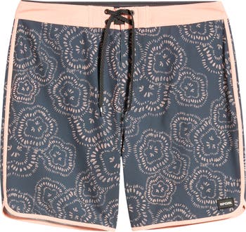 Dip and dive in these lightweight swim trunks featuring contrast binding and a bold print.