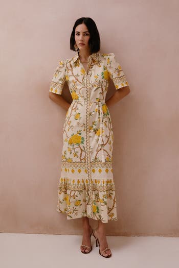 A printed cotton poplin dress with a relaxed yet polished feel. Ideal for daytime occasions, garden events, and summer celebrations.
