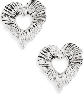 Bring date-night romance to your ensemble with these cutout heart-shaped earrings haloed by a beautifully ridged border.