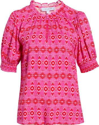 A ruffle-trimmed neck and puff sleeves bring a hint of drama to this breathable top that's perfect for desk-to-dinner moments.