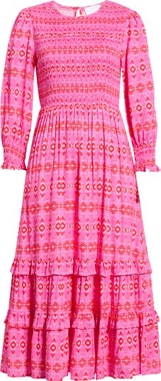 Effortless and romantic, this floral dress moves beautifully from brunch to sunset. A smocked bodice hugs just right, while airy balloon sleeves and a ruffle-tiered skirt add soft volume and plenty of twirl.
