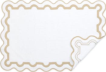 Scalloped edging brings a touch of whimsy to an ultraplush tub mat made from long-staple cotton terry.