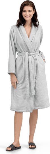 - The bathrobe looks elegant due to the embossed pattern made with jacquard weaving of threads.