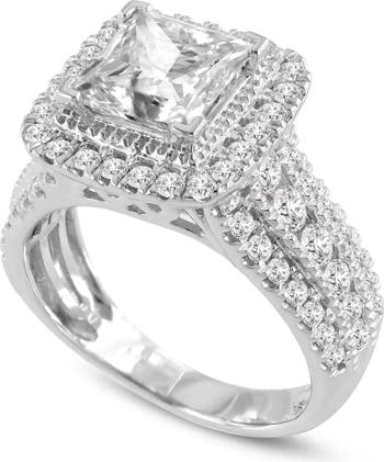 This 3.85 carat princess cut lab grown diamond ring with a halo is simply breathtaking. The ring is encased in a beautifully crafted 14K gold prong setting with round cut lab grown side diamonds. Perfect for special occasions including engagements and weddings. The ring is accompanied with an IGI certificate with the certificate number inscribed within the band. Diamond carat weight may fluctuate 0.05 carats ABOVE the stated number.