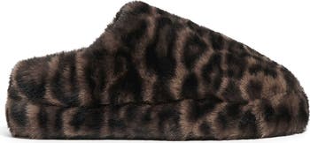 A sturdy rubber sole ensures feet can stay cozy at home or on-the-go in this fluffy faux-fur slipper.