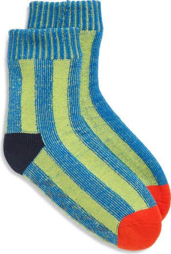 Bring a maximalist dose of color to your ensemble with these mismatched ribbed crew socks covered with inverted stripes and textured with grippy monograms at the soles.