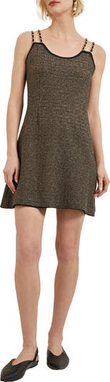 Patterned stitching emboldens this stem-showing dress elevated with dual chain straps.