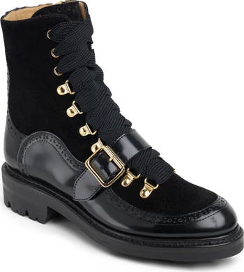 - Lace-up style; side zip closure