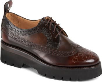 Wingtip broguing adds classic character to this smooth leather derby grounded by a platform lug sole.
