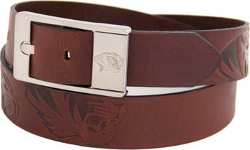 You're a devoted Tigers fan, but face paint and gaudy team accessories just aren't your cup of tea. Up your Missouri ante without the garish embellishments when you sport the Brandish leather belt. Featuring debossed team graphics repeated around the belt and an engraved team logo on the metal buckle, this adjustable belt has tons of Tigers spirit that will never interfere with your polished personal style. This is Missouri fanaticism that you can show off regardless of the occasion!