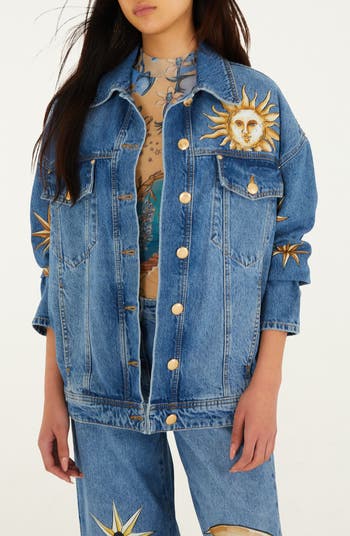 Capture the magic of the cosmos and the joyful spirit of Brazil in this relaxed-fit denim jacket distinguished by bold graphics.