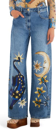 Capture the magic of the cosmos and the joyful spirit of Brazil in these wide-leg jeans cut from nonstretch denim and distinguished by bold graphics.