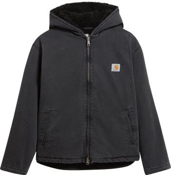 Fluffy fleece lining warms this hooded workwear jacket made from the label's durable Hubbard canvas and punctuated with a heritage logo patch.
