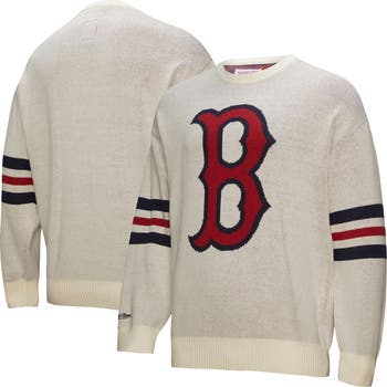 Show your Boston Red Sox pride with this Mitchell & Ness Retro Pullover Sweater. Ideal for moderate temperatures, this midweight pullover keeps you warm and comfortable whether you're at the ballpark or relaxing at home. Knit graphics and sleeve stripes add a touch of vintage charm, making it a stylish and unique addition to any Boston Red Sox fan's wardrobe.