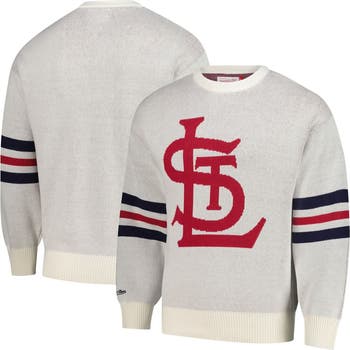Show your St. Louis Cardinals pride with this Mitchell & Ness Retro Pullover Sweater. Ideal for moderate temperatures, this midweight pullover keeps you warm and comfortable whether you're at the ballpark or relaxing at home. Knit graphics and sleeve stripes add a touch of vintage charm, making it a stylish and unique addition to any St. Louis Cardinals fan's wardrobe.