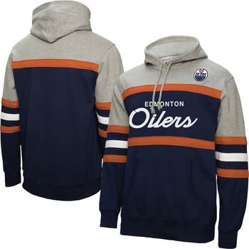 Layer up on chilly days and show team spirit while wearing this Mitchell & Ness Head Coach pullover hoodie. It features a unique Edmonton Oilers design and coordinating stripes for a fan-forward look. Fleece lining and a cozy midweight construction pair for optimal warmth and comfort.
