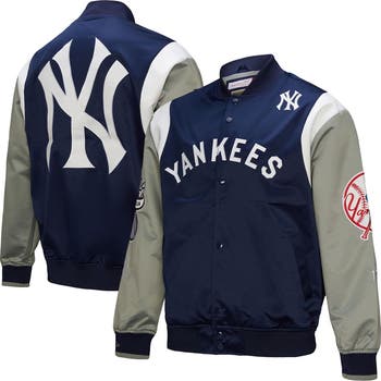 Men's Mitchell & Ness Navy/Gray New York Yankees Cooperstown Collection Team Origins Satin Full-Snap Jacket