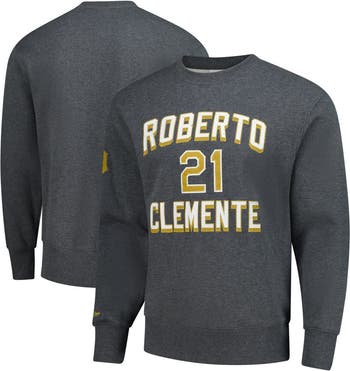 Men's Mitchell & Ness Roberto Clemente Heather Charcoal Pittsburgh Pirates Legends Collection Vintage Logo Name & Number Fleece Pullover Sweatshirt