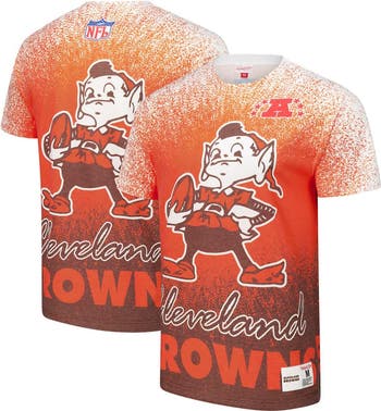 Throw it back to a classic look with this Cleveland Browns Team Burst Vintage Logo T-Shirt from Mitchell & Ness. The sublimated splatter graphics create a visually striking design element that's sure to turn heads. Made with a blend of polyester and cotton, this tee offers both comfort and durability for everyday wear.
