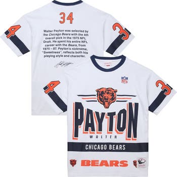 Men's Mitchell & Ness Walter Payton White Chicago Bears Name & Number Team Origins Vintage Logo T-Shirt