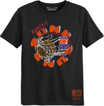 Ensure your young fan can rep the Phoenix Suns all season long with this In The Net T-Shirt. Designed by Mitchell & Ness, it features a distressed team graphic printed on the front for a bold look that's perfect for game days. This tee is finished with a classic crew neck cut and crafted from soft cotton fabric for premium comfort when cheering on the Phoenix Suns.