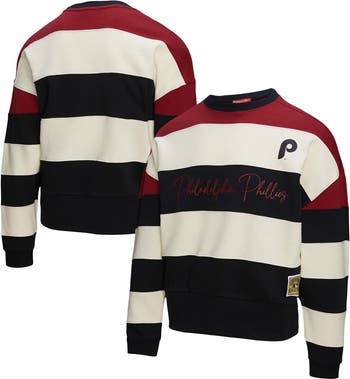 Women's Mitchell & Ness Burgundy/Black Philadelphia Phillies Cooperstown Collection Blocked Fleece Pullover Sweatshirt