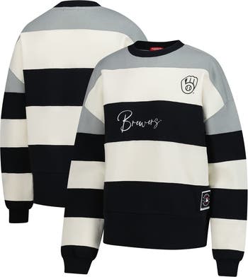 Women's Mitchell & Ness Gray/Black Milwaukee Brewers Cooperstown Collection Blocked Fleece Pullover Sweatshirt