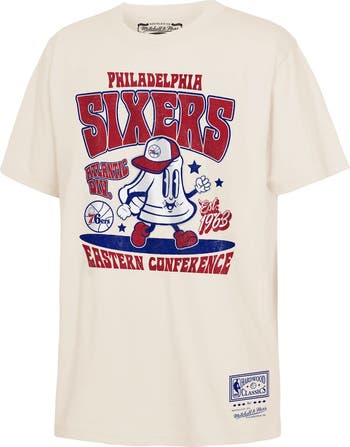 Youth Mitchell & Ness Cream Philadelphia 76ers Retro Mascot Script T-Shirt