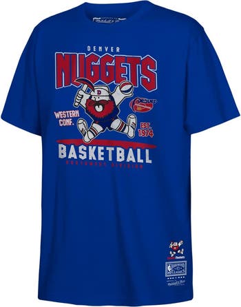 Youth Mitchell & Ness Royal Denver Nuggets Retro Mascot Script T-Shirt