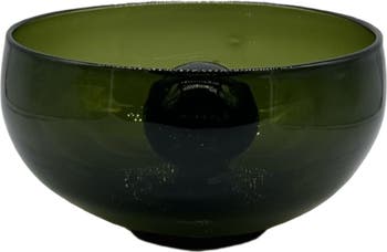 The Mitla bowl is made using recycled glass by artisans in Guadalajara Mexico. Forest Green Colors.