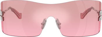 Rimless frames add a glamorous vibe to Italian-made sunglasses with a wrapped shield silhouette and signature logo hardware at the temples.