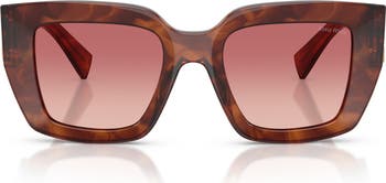 Signature logo hardware glints at the hinges and temples of Italian-made sunglasses featuring sharp square frames and gradient lenses.