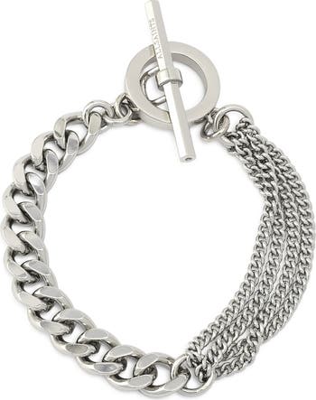 Enhance the shine of everyday looks with a polished toggle bracelet that expertly combines modern trends with classic aesthetics thanks to curb links and a layered chain.