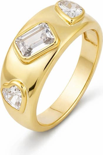 Cubic zirconia in mixed shapes is scattered across this hand-polished sterling silver ring glowing in 14-karat-gold plating.