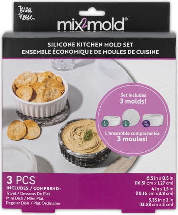 MIX2MOLD: VALUE SET MOLDS - KITCHEN 3PC - Create a charming matching kitchen set with the Brea Reese Mix2Mold Kitchen Molds Value Set. This 3-piece kit includes silicone molds to craft decorative trivet, ramekin, and snack dish – perfect for adding a personal touch to your kitchen decor. Crafted from durable and reusable silicone material, these molds are designed to withstand high temperatures, making them ideal for repeated use in your kitchen projects. The non-stick surface ensures easy removal of your creations, while the dishwasher-safe feature allows for hassle-free cleaning. Whether you are a beginner or an experienced crafter, these molds are perfect for all skill levels. Use them to create unique side dishes, salads, or display them as centerpieces filled with artificial fruits. The possibilities are endless with these versatile kitchen molds. Elevate your DIY craft game with the Brea Reese Mix2Mold Kitchen Molds Value Set. Add a touch of creativity to your kitchen projects with this kit that includes molds for resin, ceramic resin, and eco-resin project making. Choose quality, durability, and endless crafting possibilities with these silicone molds.