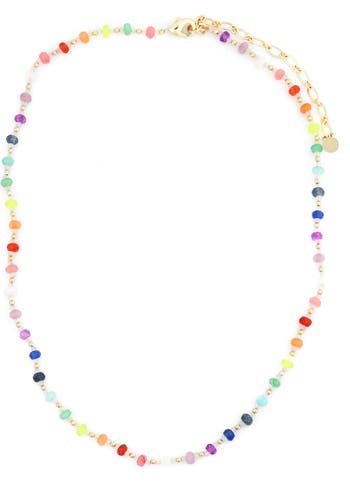 A rich mix of polished crystals brings striking contrast to this multi-colored necklace finished with 14-karat-gold plated beads.