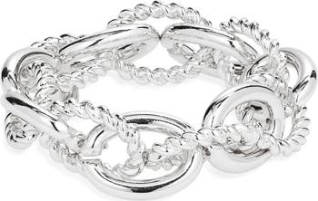 Smooth and twisted links alternate to bring contrast and dimension to this stretch bracelet perfect for everyday.