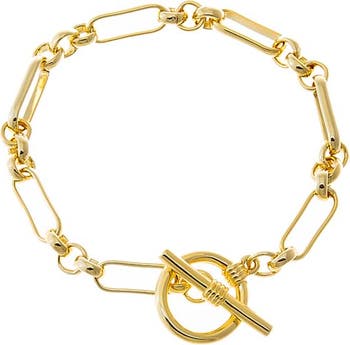 Let your jewelry do the talking with the Mixed Link Toggle Bracelet by Adina Eden, a confident Bracelet. Create your perfect combo with this 14k gold plated bracelet, offered in Gold. When your outfit needs polish without the pressure, this piece offers that low-effort, high-reward finish we all love. Pair this gold plated bracelet with pieces from our Chain Bracelets collection to create a cohesive, elevated look. It's refined, reliable, and made to be styled again and again.